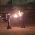 Eine ganz neue Form einer neuen vorweihnachtlichen Stunde begeisterte Eltern und Schülerinnen im wunderschönen Ambiente des Innenhofs der Schule. Zwischen den bekannten weltlichen Weihnachtsliedern von „Let it snow“ bis „Little drummer boy“ des Chores unter der Leitung von Erhard Schumm öffneten sich die Falttüren von der Pausenhalle zum Innenhof. Die Schülerinnen und Schüler des Wahlfachs „Zirkus“ präsentierten so in drei Abschnitten im Freien eine kleine Feuershow mit Feuerstäben, Feuerschwertern und Feuerschleudern, einstudiert von Frau Kubik.